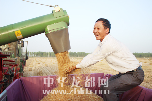 ??? ?眼看金燦燦的麥粒不斷從機(jī)倉(cāng)里流出,項(xiàng)城市一農(nóng)民的臉上露出了燦爛的笑容。為保證夏收順利進(jìn)行,項(xiàng)城市充分發(fā)揮大型農(nóng)業(yè)機(jī)械在麥?zhǔn)罩械淖饔茫瑺?zhēng)農(nóng)時(shí)、搶速度,確保小麥顆粒歸倉(cāng)。 (張永久 攝)