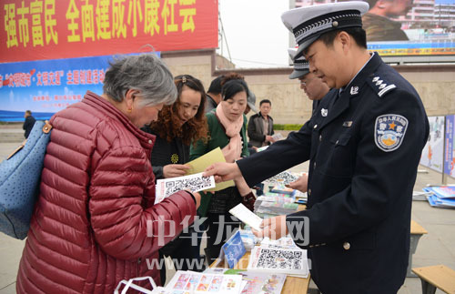 交警向市民發放宣傳單,呼吁市民文明出行。