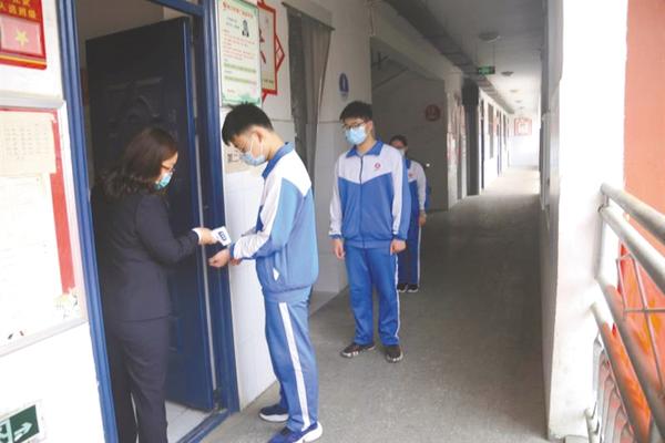 4月20日6時50分,記者在周口四中門口看到,學生們在家長的陪伴下陸續趕來,按照學校提前下發的入校流程,在校門口間隔一米距離有序排隊。然后,他們按規定依次遞交健康承諾表后,在值班教師的引導下,通過大門兩側設置的體溫測試通道入校,每個通道處都有工作人員負責引導學生、噴灑消毒液。