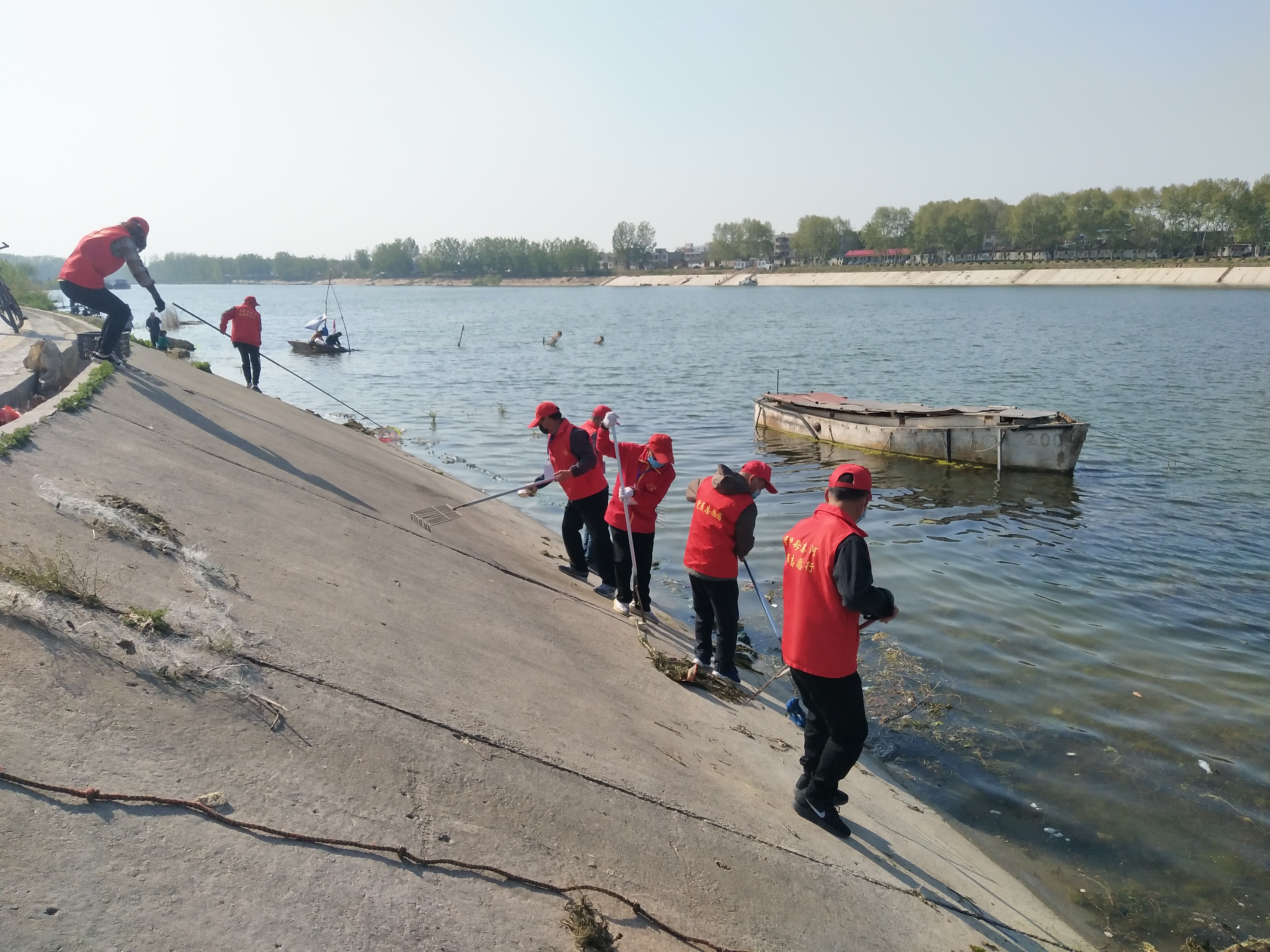 “你看那名大爺,我們這兒年紀最大的,68了,老黨員,我還沒分工呢就先下去撿垃圾了。”4月13日下午,大閘上游中島,周口慈孝文化促進會會長孫彩云剛見到記者就介紹了起來。