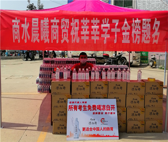 在商水二高考點(diǎn)附近,該公司負(fù)責(zé)人袁紅亮表示,今年的高考遭遇疫情、高溫,非常特殊,作為民營(yíng)企業(yè),我們?cè)笧榭忌鸵黄瑦坌?,送一絲清涼,幫助他們渡過這個(gè)難忘的高考。