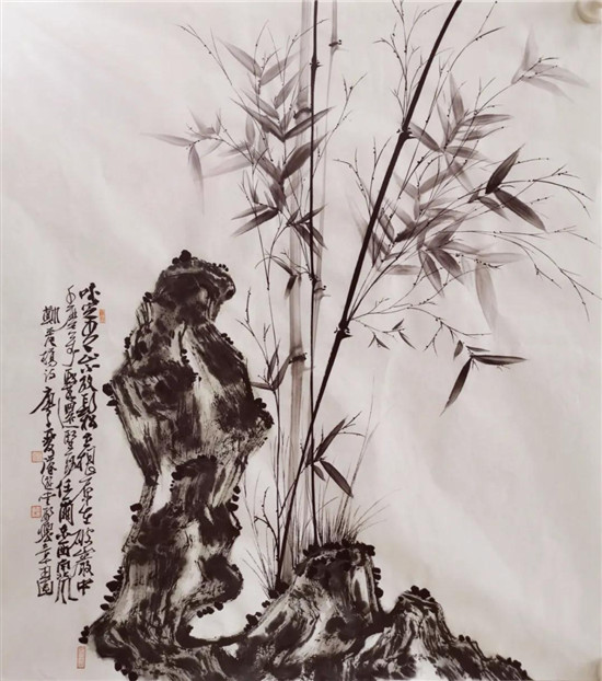 最近,懷章先生送我一幅新創作的竹石圖裝點陋室。送去琉璃廠裝裱做框,裱畫師傅看到這幅畫,眼睛一下就亮了:這個畫,真好!看落款就知道有功夫。