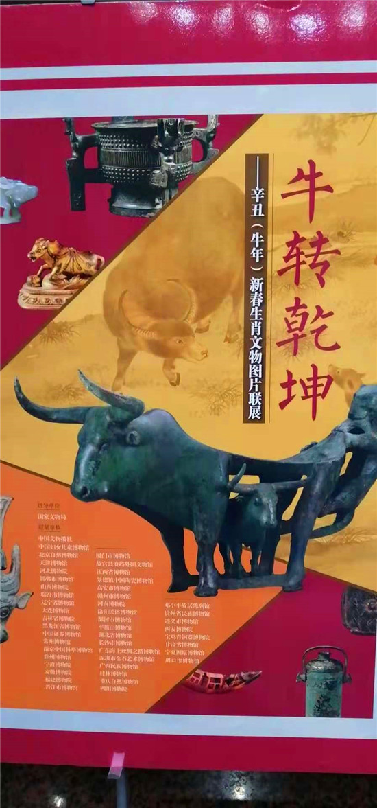 2月9日上午,為迎接傳統牛年春節的到來,由中國文物報社與40多家文博機構聯袂舉辦的“牛轉乾坤”辛丑牛年新春生肖文物圖片展在周口市博物館開展。