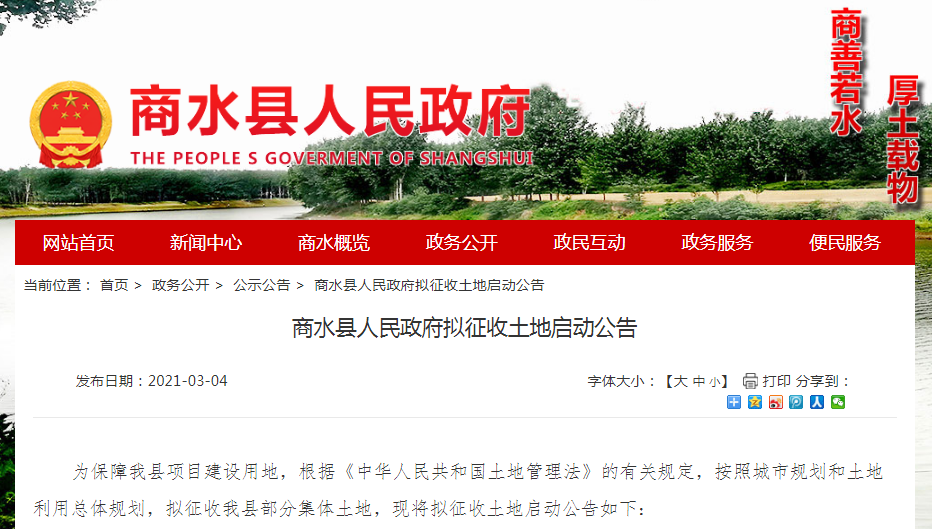 商水縣人民政府擬征收土地啟動公告