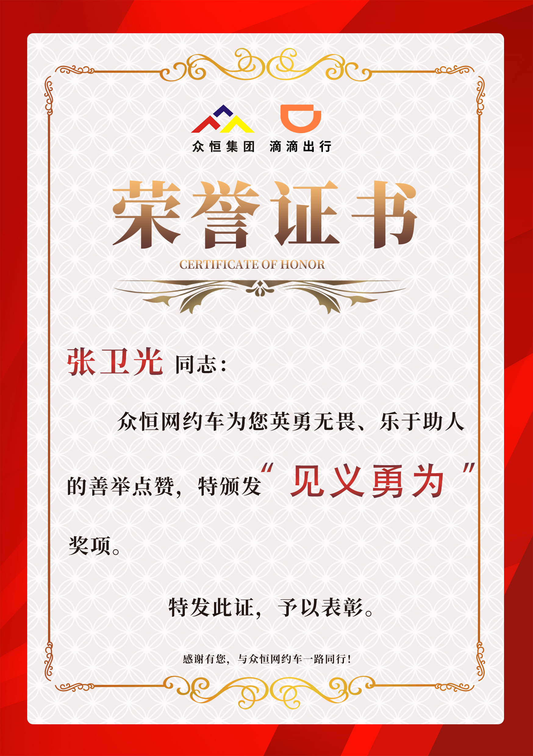 “當(dāng)時(shí)只想著救人,其他都沒顧上。”面對(duì)患者家屬的連聲道謝,張衛(wèi)光顯得格外低調(diào)。他表示,作為滴滴隊(duì)長(zhǎng),公司定期組織的急救培訓(xùn)和應(yīng)急演練讓他在關(guān)鍵時(shí)刻能冷靜應(yīng)對(duì),“每個(gè)司機(jī)都可能遇到類似情況,我只是做了該做的事”。周口市人大代表,市交通運(yùn)輸行業(yè)黨委委員謝華在得知此事后,對(duì)張衛(wèi)光的善舉給予高度評(píng)價(jià)并頒發(fā)榮譽(yù)證書:“張師傅用實(shí)際行動(dòng)詮釋了‘服務(wù)至上’的理念,他的專業(yè)與熱心是網(wǎng)約車司機(jī)群體的縮影。”