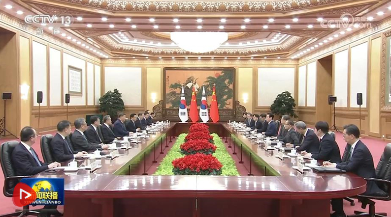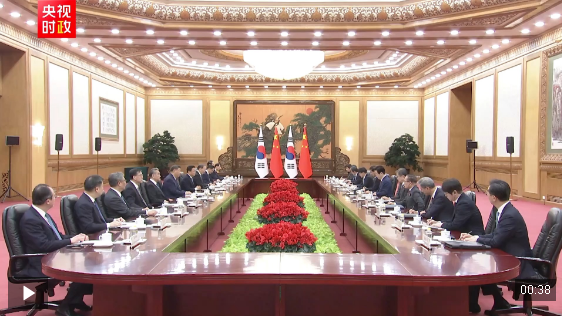 1月5日下午,國家主席習近平在北京人民大會堂同來華進行國事訪問的韓國總統李在明舉行會談。