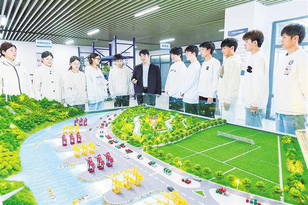師生在學(xué)校“智慧仿真實(shí)訓(xùn)室”了解周口港建設(shè)。近日,周口市港航產(chǎn)業(yè)發(fā)展商會(huì)、周口城市職業(yè)學(xué)院戰(zhàn)略合作暨“AI+港航創(chuàng)新中心”簽約揭牌。這是我市又一家職業(yè)院校參與周口航運(yùn)發(fā)展、校企深度合作的生動(dòng)實(shí)踐。記者 劉華志 攝影