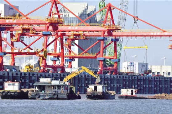 11月18日,數艘清淤船在周口港小集作業區港池內緊張施工。為確保年底開港,港池清淤工作正按計劃推進,預計將于11月20日全部完成。