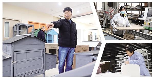 ?1月4日,項城市丁集鎮田寨村村辦寵物家具生產車間里,工人們正加緊進行打磨、組裝工序,一件件精致的寵物家具陸續下線。