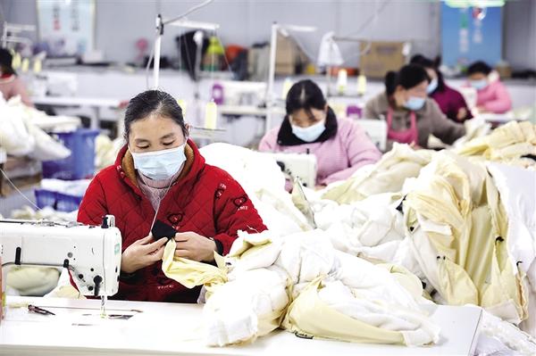 近年來,淮陽區四通鎮中營子村以黨建為核心引擎,筑牢基層戰斗堡壘,牽頭建起現代農業服務合作社、種植合作社等,走出“黨組織搭臺、企業唱戲、群眾受益”的強村路徑。圖為村民在村辦服裝廠工作。