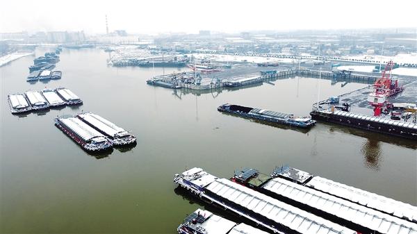 雪落沙潁河,潮涌新征程。1月1日,新年第一天,周口中心港范營作業(yè)區(qū)碼頭上,工人有條不紊地裝卸著各類貨物。河面上,待泊的貨船排起長隊,船民們細心清理船上的積雪。另有滿載貨物的貨船鳴笛啟航,駛向遠方。