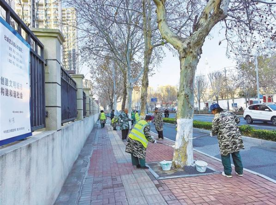 連日來,市園林綠化中心組織專業(yè)養(yǎng)護人員,對周口中心城區(qū)主次干道及公園內(nèi)的樹木進行涂白作業(yè),為它們穿上“防寒衣”,確保樹木安全越冬。