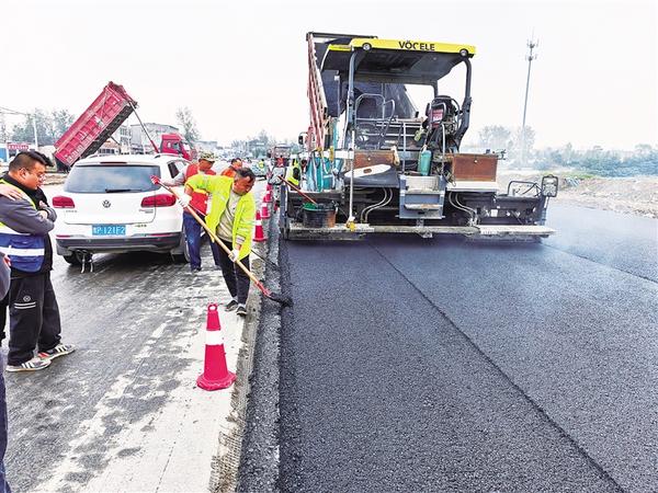 10月22日,106國道改建工程現(xiàn)場一片熱火朝天的施工景象。