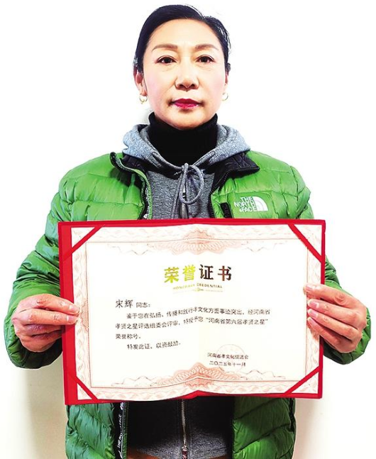 12月13日,一份承載著榮譽的郵件抵達淮陽區淮寧街道。當天,退休職工宋輝收到了來自河南省第六屆“孝賢之星”評選組委會寄來的燙金榮譽證書、紀念勛章及綬帶,她被評選為河南省第六屆“孝賢之星”。