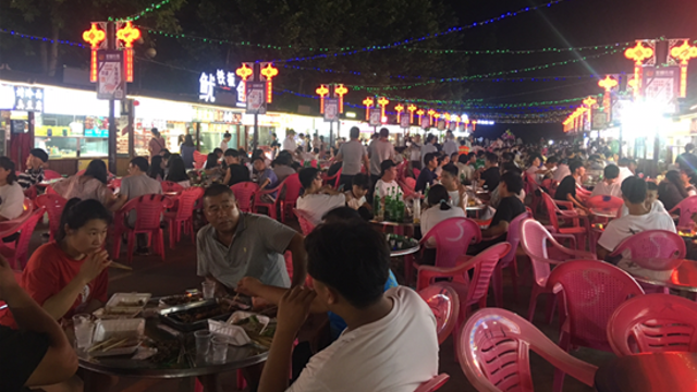 夜幕降臨,花燈初上,位于開發(fā)區(qū)廣場(chǎng)的南廣場(chǎng)夜市漸漸熱鬧起來。