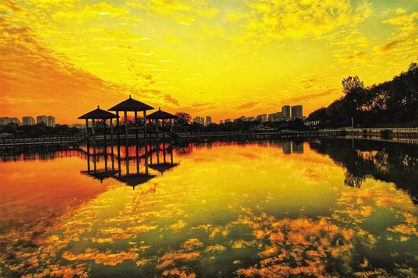 12月18日傍晚,周口公園在夕陽的照耀下呈現出迷人景象。